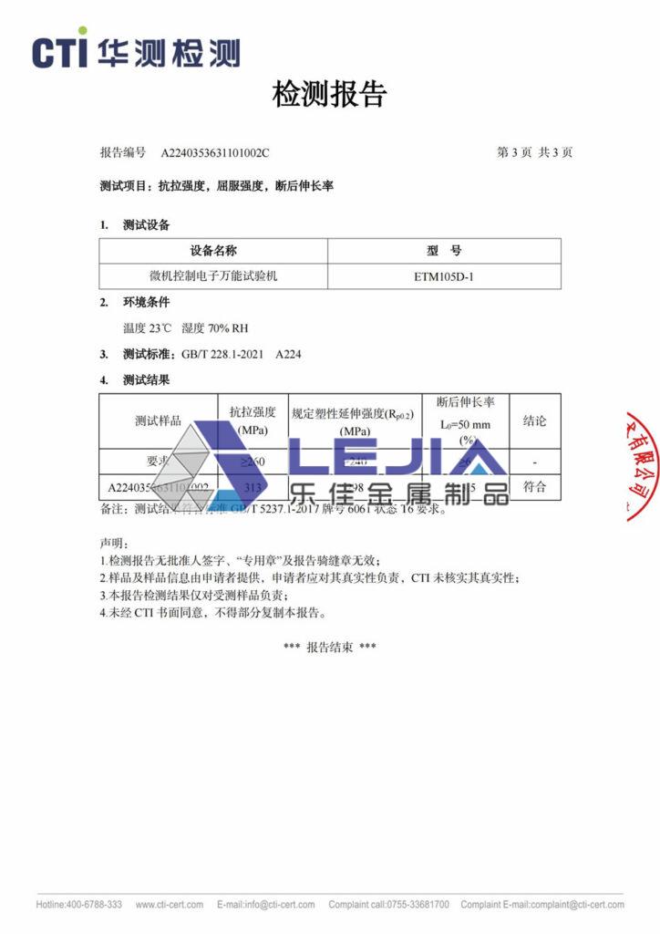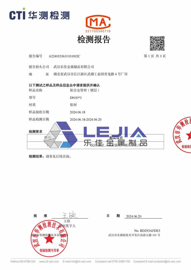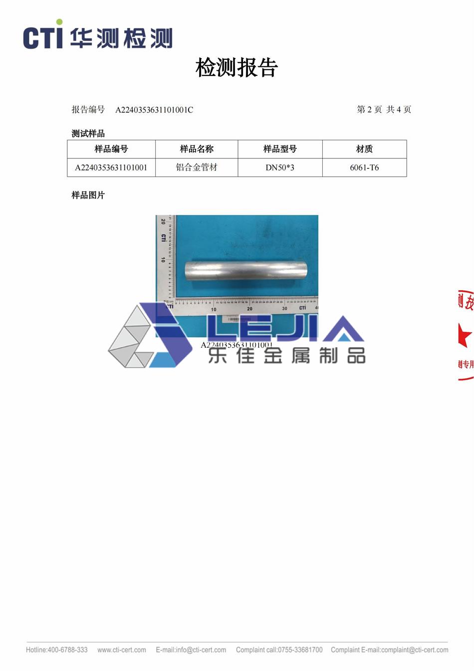 6061-T6 铝合金50*3圆管(镀层)-质检报告
