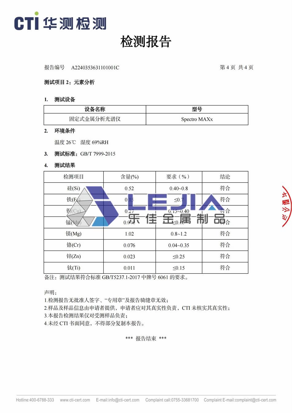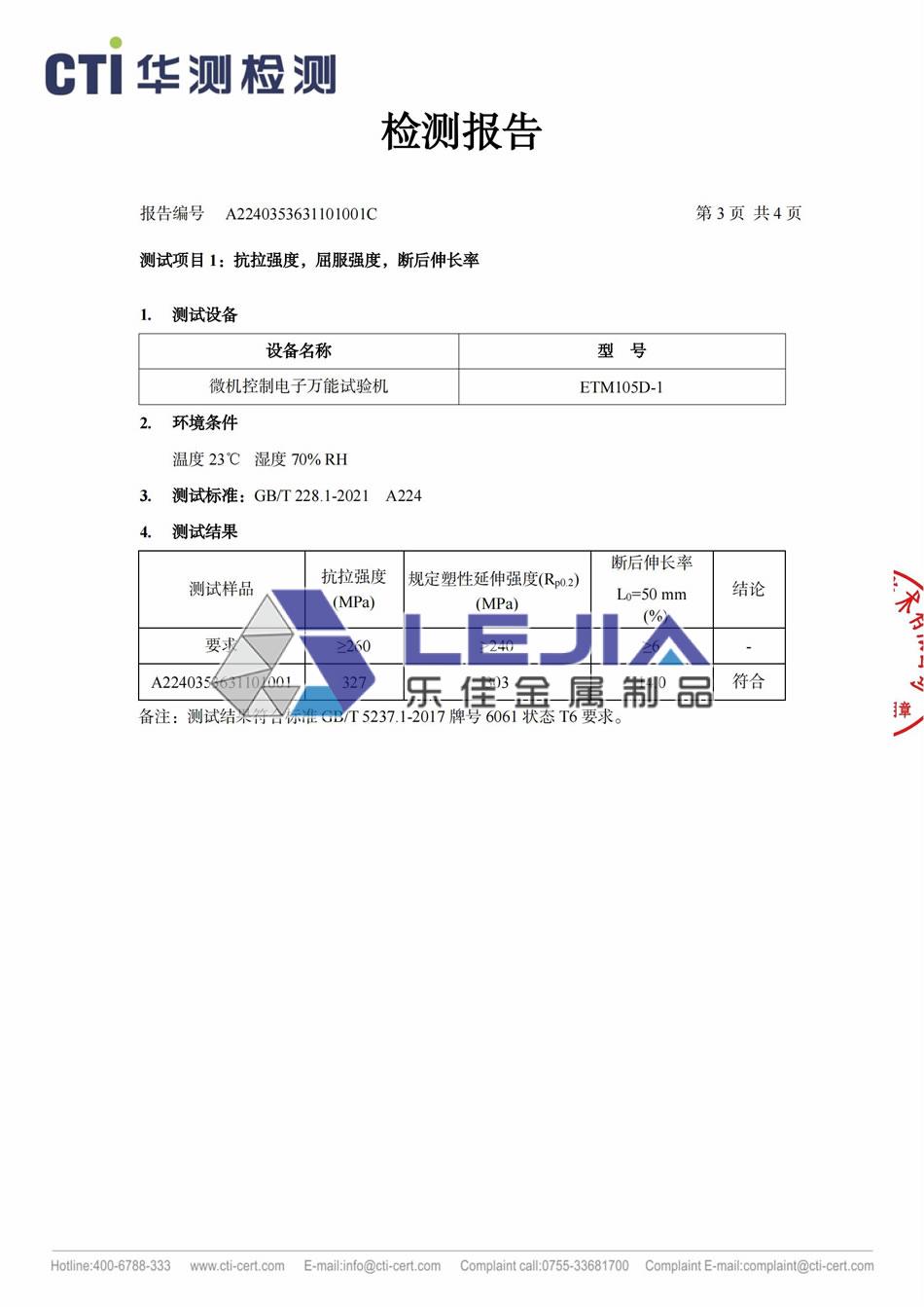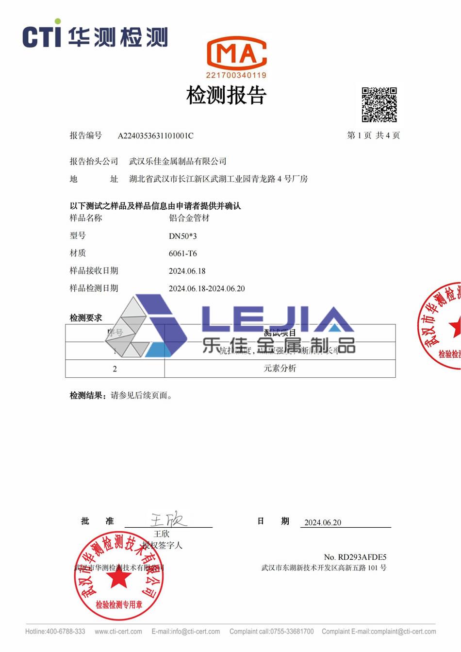 6061-T6 铝合金50*3圆管(镀层)-质检报告